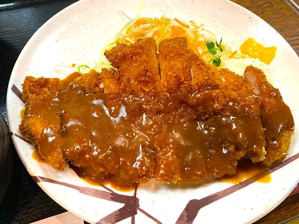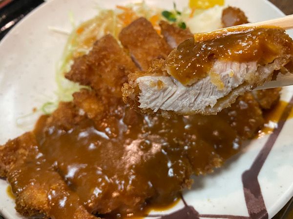 ソースは甘味がおいしいデミグラスソースです。 最近は付けて食べるソースが多いですが、かかっているソースも最高です。そして量がバッチリ。足りなくもなく、残ることもなく。流石のバランスです。