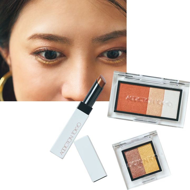 「1つ買えば全顔つくれるコフレが大好きです!普段使わない色味でも、トータルで使うことで旬の顔になれるんです。今季注目したのはアディクション。ゴールドシャドウを下まぶたに入れたら今っぽく変身できました」(武岡さん)アディクション ホリデー アディクション ファンタジー フリーフォール Ⅱ ¥7,040(ADDICTION BEAUTY)