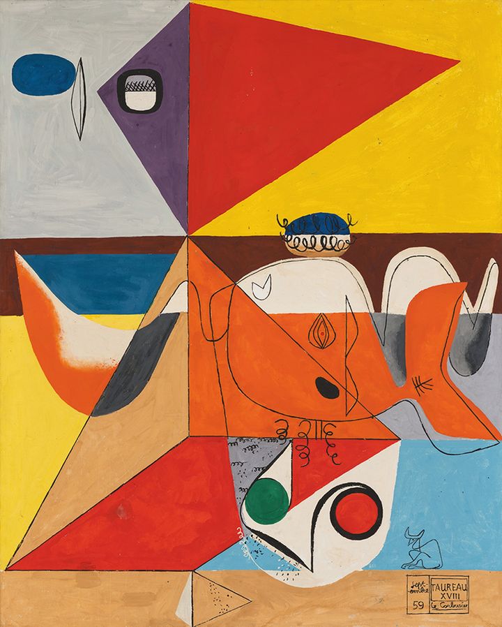 実は、コルビュジエの40代以降の円熟期の創作に光を当てる展覧会は日本では初めて。会場には、《牡牛XVI》《牡牛XVIII》《牡牛》の3連画が登場。人間の生命力と精神の進化を象徴的に表した「牡牛」シリーズは彼が手がけた絵画の集大成で、本展の目玉のひとつだ。