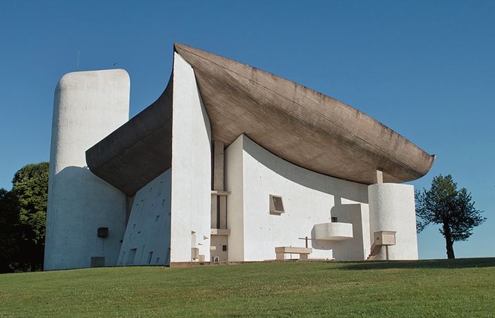 第二次世界大戦で破壊された礼拝堂の再建として建てられた、コルビュジエが最初に手がけた宗教建築。