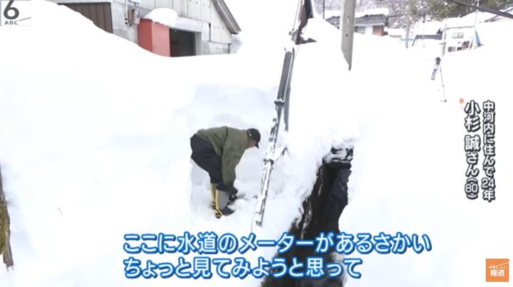 中垣内に住んで24年の小杉誠さん(80)もスコップで雪と奮闘していました。聞けば、「お風呂のお湯が出ない」とのこと。雪を掘り進めること10分、ようやく姿を現した水道メーターを確認し、水道管が破裂していないことはわかりました。