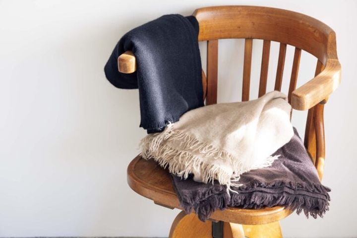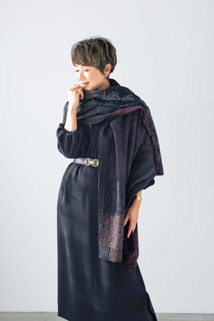 「バッグの中にくしゅっと入れておいて、寒いときにサッと巻くカシミアのストール。ワントーンで合わせることが多いです」