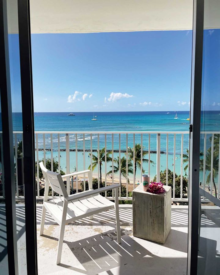 「2023年に改装されたため客室がとてもきれい。ハワイは閉店時間の早いお店が多いですが、エントランスにあるABCマートは夜11時まで営業していたので、飲み物やお土産を買うのにすごく便利でした」(川瀬英里奈さん/スタイリスト)