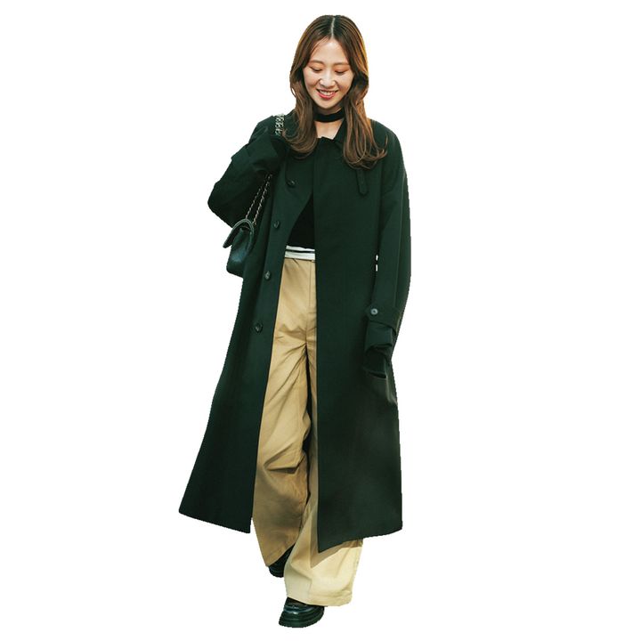 長め丈トレンチが欲しい私とシックなコートを探していた夫のお互いの希望が一致。お高めでもシェア前提だから挑戦しやすい◎(柳沢 遥さん/29歳・アパレル)