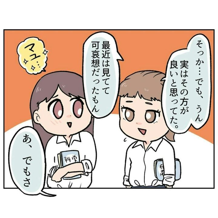 ユキトと別れたにしこ。モヤモヤから解放され、スッキリしたようですね!いつも心配してくれていた親友のマユも「良いと思う」と言ってくれました。