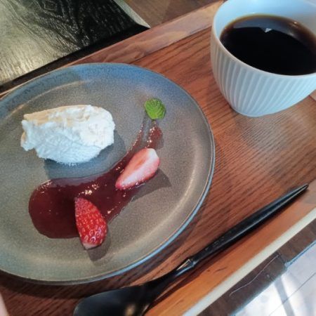 この日のランチデザートはクレームダンジュという私はお初スイーツ。ふんわりと軽い味わいでお食事後にも負担にならないスイーツでした。