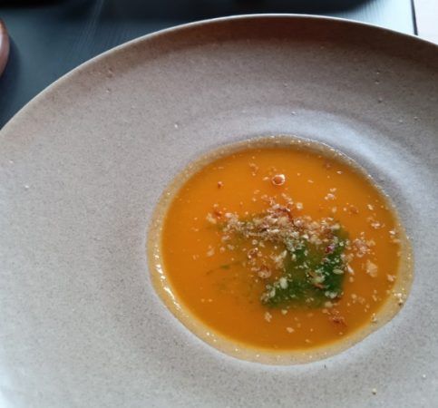 先ずは縮みほうれん草とバターナッツ南瓜のすり流しが運ばれました。