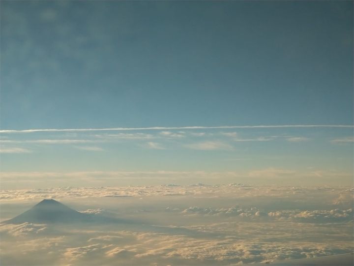 帰りの飛行機の中からは、雲海のなかに浮かぶ富士山を見ることができて、束の間のリラックスタイムを味わえました♪