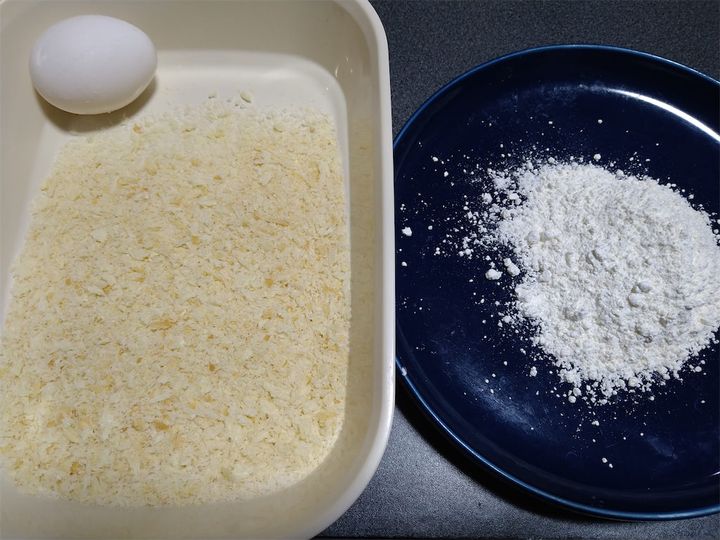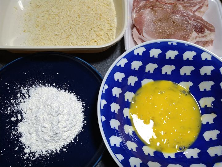 2.小麦粉→溶き卵→パン粉の順番に衣を付ける。