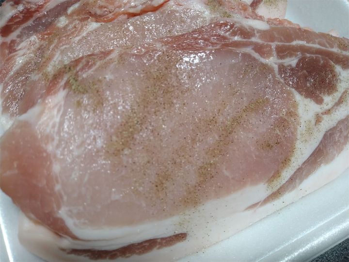 1.豚肉の筋を切って、軽く塩、こしょうをまぶす。