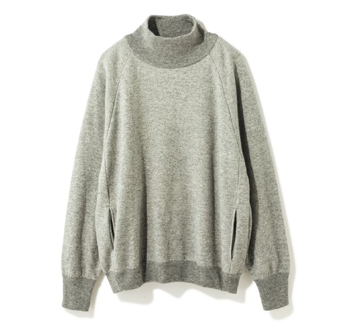 リブやラグラン袖が一見するとスウェットのようだけど、素材は厳選されたカシミアとシルク。それぞれの良さを掛け合わせた一着は、暖かくなめらかで贅沢な着心地。ブラックもあり。