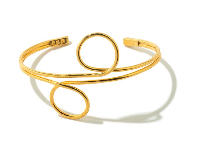 ナバホ族のアーティストがつくるバングルは、流れるようなラインが印象的。温かなゴールドの色は肌馴染みも良く、幅広い装いにマッチ。