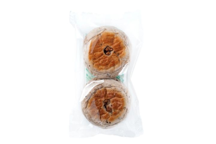 『成城石井自家製 八穀とくるみの平焼きパン』(4個、税込431円)は、くるみとプチプチ食感の雑穀をもっちりとした生地に練り込んだ一品。温めるとより一層、雑穀の香ばしい香りが広がります。食べ応えがあるのも人気の理由。