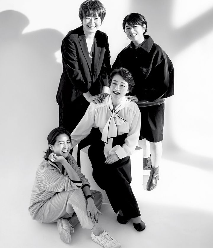 撮影/古水 良(cheek one) ヘア・メーク/森 ユキオ(黒田さん)、本多遥香(荒木さん、原口さん、竹村さん)〈ともにROI〉スタイリスト/竹村はま子(黒田さん)取材/小仲志帆