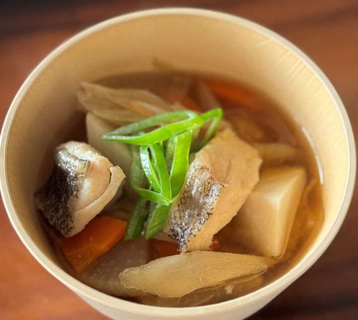 冷蔵庫に根菜が残っている……そんな時に大活躍のみそ汁。栄養を汁ごと全部いただけるスーパーフードです。食物繊維たっぷりの根菜をふんだんに使うことで腸内をスッキリお掃除。そしてみその発酵の力で善玉菌を活発にし、腸内環境を整えます。お鍋で主役のたらは、低脂質、高たんぱくの魚のヘルシーな食材です。いつものみそ汁に入れることで、おかずの一品になります。