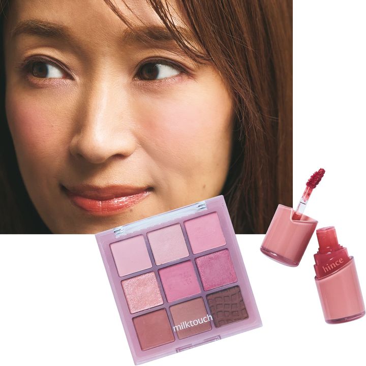 「まだ娘にはグロスくらいしか使わせていませんが、韓コスなどの知識がとても豊富なんです。milktouchのアイシャドウ02番はチークで使うことを提案され、挑戦してみたら統一感のある顔に仕上がったので驚きました!hinceのグロスR002番も娘のおすすめ」(早野さん)