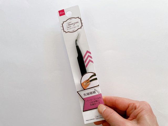 ダイソーの「ピンセット(カーブ)」は、ネイルアートにぴったりのアイテム。先端が極細で、小さなパーツやシールもつかみやすいのが特徴です。