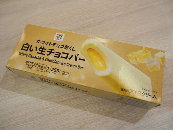 「7P 白い生チョコバー」は、3層仕立てのぜいたくなホワイトチョコアイス。ホワイトチョコアイスの中にホワイト生チョコソースを入れ、ホワイトチョコでコーティングしています。