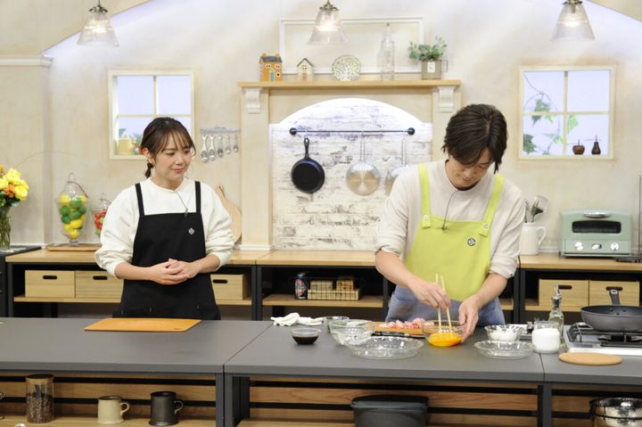 勢い余ってフライパンと皿を接近させすぎたDAIGO。その結果、鍋底に大量のご飯粒がベッタリとついていたのだ。「ご飯がめっちゃ底に(笑)」と思わず爆笑してしまうゆりさん。料理番組にあるまじきピンチだが、DAIGOは「あ〜、ついちゃってるね。オーケー、オーケー」と冷静そのもの。余裕すら感じさせる落ち着きぶりで作業を続け、卵のスライド盛りに成功。美しい“卵オンザライス”を完成させた。