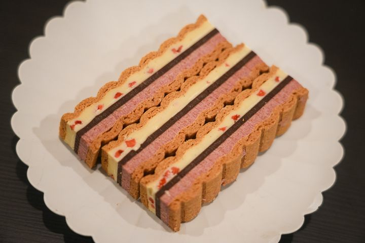 「Nami-Nami」は波型サブレに軽やかな2種のクリームと、食感と味のアクセントとしてカカオ豆から作った自家製ビーントゥバー板チョコレートを挟み、1口で様々な食感と味わいを楽しむことができるスイーツです。見た目の華やかさからも、喜ばれること間違いなしの一箱。波を打つような可愛らしいフォルムだけではなく、お味も一級品です...!