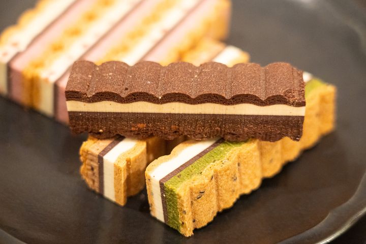 冷蔵庫から出し、常温で10~30分ほど置いてから食べると、少し柔らかくなったクリームと、パキッとした自家製チョコレートの2つの食感の対比が楽しめます。