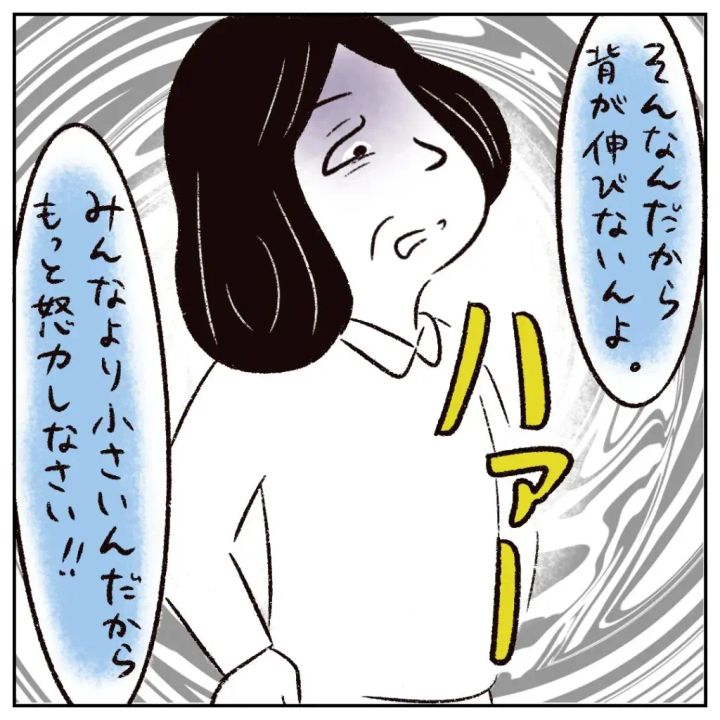 すると、「ハァー、そんなんだから背が伸びないんよ。みんなより小さいんだから、もっと努力しなさい!!」と呆れたように言うのでした。