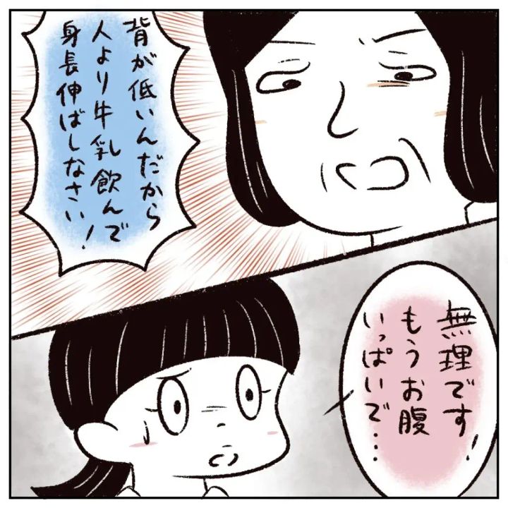 そして、「背が低いんだから、人より牛乳飲んで身長伸ばしなさい!」と怒ったようにまるさんに言い、「無理です!もうお腹いっぱいで・・」と食の細いまるさんは、もう無理だと伝えました。