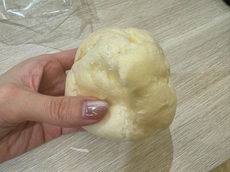 「白いダース ホワイトチョコもこ」をいただいてみると、袋を開けた瞬間甘い香りがふわっと広がります。2層のホワイトチョコは白いダースらしいなめらかでクリーミーな口どけ。もっちり生地の中は「ホワイトチョコクリーム」と「ホワイトチョコガナッシュ」の2層になっていて、ホワイトチョコ好きにはたまらない、濃厚な味わいでした♪