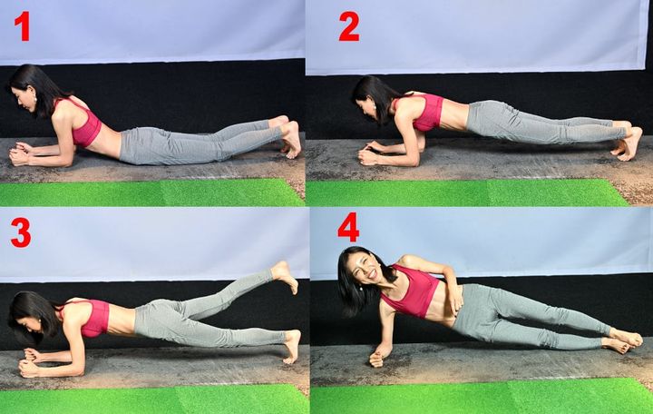 4.余裕があればプランクの姿勢から体を横に向けて静止します。この姿勢のままテレビを観てもいいかもしれませんね。