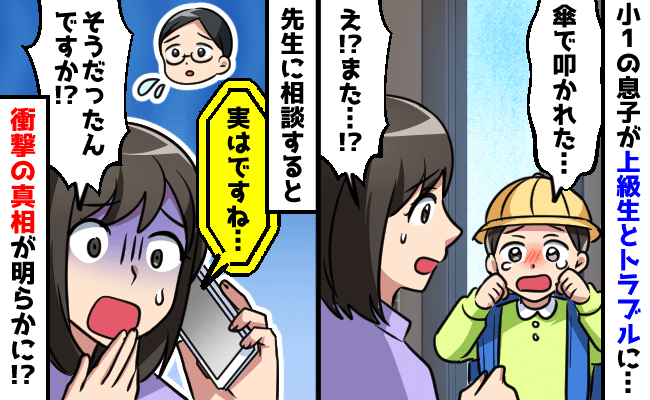 「傘でたたかれた」息子が大泣きで帰宅…上級生とトラブル?心配で先生に相談すると、衝撃の真相が判明!?