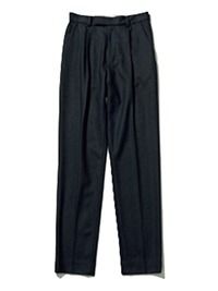 黒パンツ/THE NEWHOUSE(アーク インク) 裏地のない、軽くてしなやかなウール素材。ワンタックで太ももまわりに適度なゆとりを出してリラクシーに見せつつ、全体のすっきり感は維持。