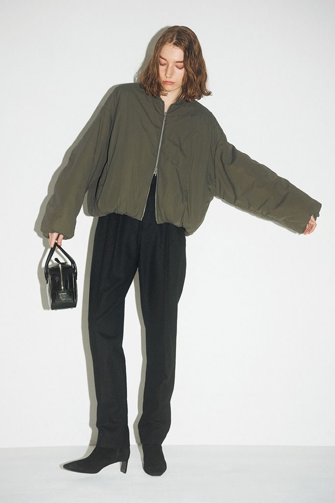 黒パンツ/THE NEWHOUSE(アーク インク) カーキMA-1/STUNNING LURE(スタニングルアー 青山店) 黒バッグ/MAISONCANAU(ヤマニ) 黒ブーツ/TSURU By MARIKO OIKAWA はくとより実感できる美しい佇まいは、何度も再販を繰り返す人気の形。