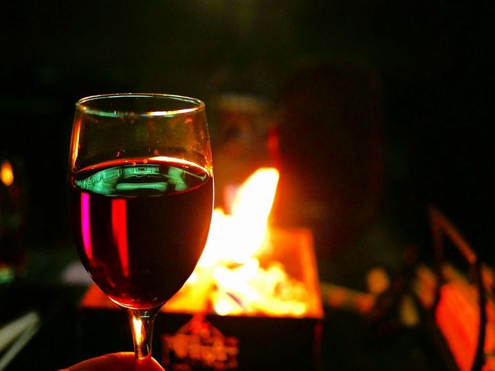 ちなみに赤ワイン(800円)を焚火で飲むと、とても幻想的な色合いになって、つい飲まずに見つめていたくなる!!
