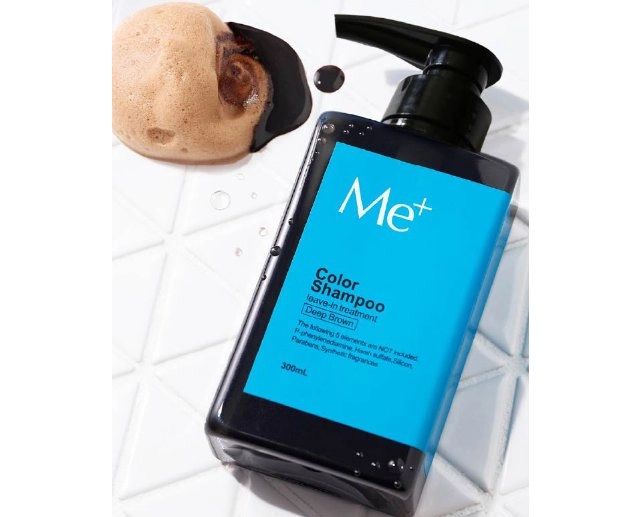 白髪染めだけでなく、過剰皮脂・フケ・パサつき・ハリコシなどの、40代以降に気になり始める悩みを1本でケアできるのが『Me+(ミープラス)』の「スカルプカラーシャンプー」。髪や頭皮に優しいイオン染料とHC染料を使用し、髪表面を染め上げます。