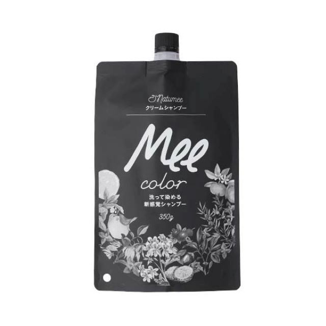 シャンプー・トリートメント・白髪染めが1本になった『natumee(ナチュミー)』の「クリームシャンプーMEE color」。ナノ分子染料(HC染料)と超微粒子の炭を配合したダブル染めで内側と外側から染め上げ、クチナシやクレイの天然色素着色料が自然な色味を演出します。
