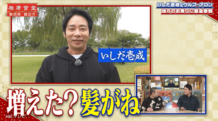 いしだが登場すると、千鳥の大悟は、「もう50歳!?」「ワシらが高校生のとき、一番人気あったからね!」とコメント。いしだの髪が伸びたことに、「増えた? 植毛でこんななるの?」と驚いた。これに相方のノブは同意しつつ、「ただ、作品を見るたびに『あぁ、植毛だぁ』っていうのは一瞬思う」と苦笑い。大悟も思わず笑いつつ、「でもやっぱ男前やなぁ」としみじみ呟いた。