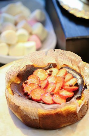 こちらが「いちごの使い魔」。この色はなんと竹炭を使ったパブロヴァで、その上にいちご味のジャムといちごクリームを絞り、仕上げにフレッシュいちごをあしらっています。 軽く甘めのパブロヴァと、いちごクリームが不思議とマッチ。パブロヴァのザクザクホロホロした食感が面白かったです。