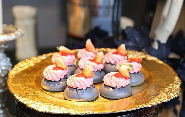 「The Wizard of Strawberry」は、直訳すると「いちごの魔法使い」という意味。「妖精と魔女」という対称的な世界を表現したとのことで、ビュッフェのレイアウトもパステルピンクを基調とした柔らかい妖精×ダーク調で竹炭や抹茶を使用した陰鬱な魔女のコントラストが際立っていたのが印象的でした。