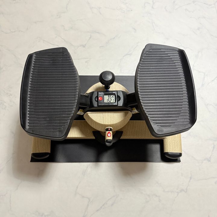 総合フィットネスクラブやアプリ、フィットネス商品を展開する「オアシス」が手がける人気のステッパー。約新聞紙半分ほどの省スペースで設置可能で、木目調のインテリアに馴染むおしゃれなデザイン。機能面としては、上下に踏み込む「エアロモード」と、ウエストにひねりのアプローチを加えられる「ツイストモード」の2つを搭載。メーター機能付きで、ステップ回数や使用時間、消費カロリー、1分あたりの平均ステップ回数を見ながら運動することができる。