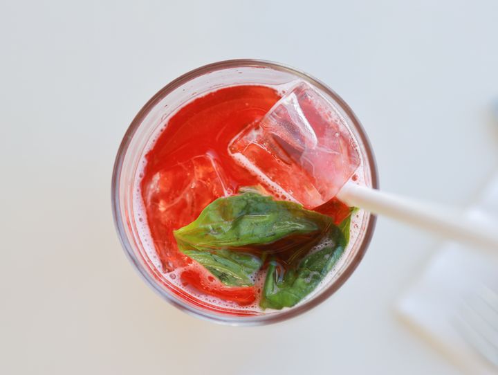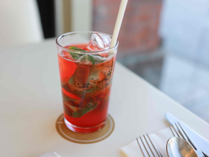「ストロベリー&バジルソーダ」は、ストロベリーシロップにフレッシュバジルをたっぷり加えた、大人のノンアルコールドリンク。鮮やかな赤色が、気分を盛り上げます。