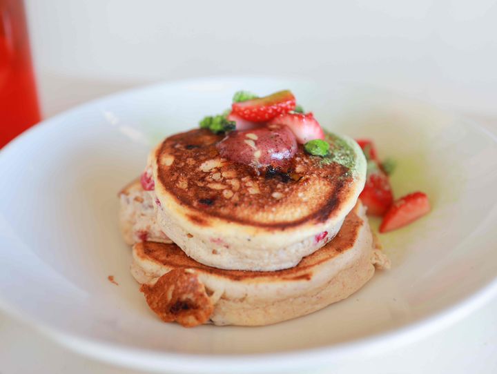 3枚重ねのパンケーキは、そのままシンプルに味わうのはもちろん、シロップをかけたり、いちごやピスタチオと合わせたりと、さまざまな組み合わせで頬張る時間を存分に楽しめます。