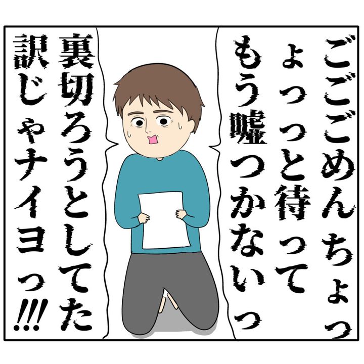 「ご、ご、ごめん、ちょっっと待って!もう嘘つかないっ!裏切ろうとしていた訳じゃナイヨっ!!!」とあかりちゃんの作文を握りしめて、めいさんに訴えるろみ緒さん。