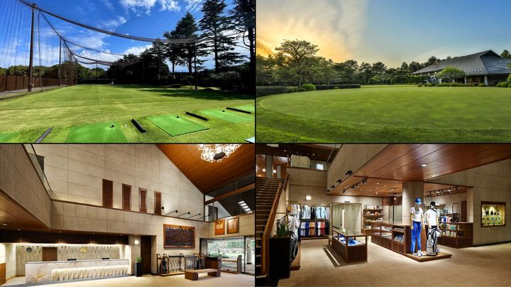 左上から:ドライビングレンジ(50ヤード10打席)、パッティンググリーン。