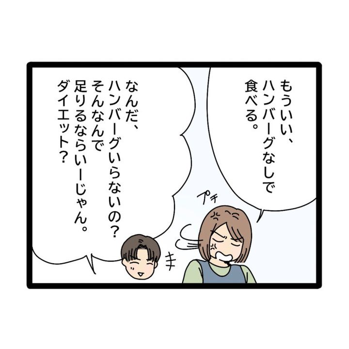 奈々子さんは「もういい、ハンバーグなしで食べる」と怒りを抑えていると「なんだ、ハンバーグいらないの?そんなんで足りるならいいじゃーん。ダイエット?」と笑う学さんを見てイライラが止まらない奈々子さんでした。