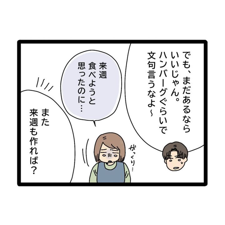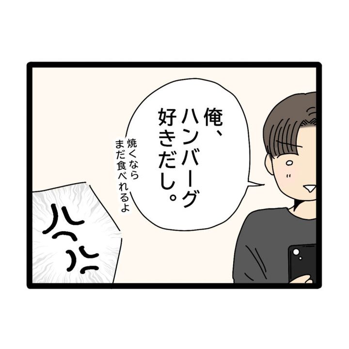 「俺、ハンバーグ好きだし。焼くならまだ食べられるよ」と全く反省していませんでした。