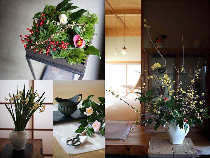 厳しい冬の寒さに耐えながら花を咲かせるロウバイ、ウメ、サザンカ、スイセンを、「雪中四友(せっちゅうしゆう)」と呼ぶそうです。これらの草木は、私たち日本人にとっても新年を祝う縁起物として重宝され、その芳香も冬から春へと移ろう季節の風物詩として古くから親しまれてきました。今回は、そんな「雪中四友」のサザンカの代わりにツバキを取り入れた前田満見さんの春を待つ冬の暮らしの楽しみを教えていただきます。