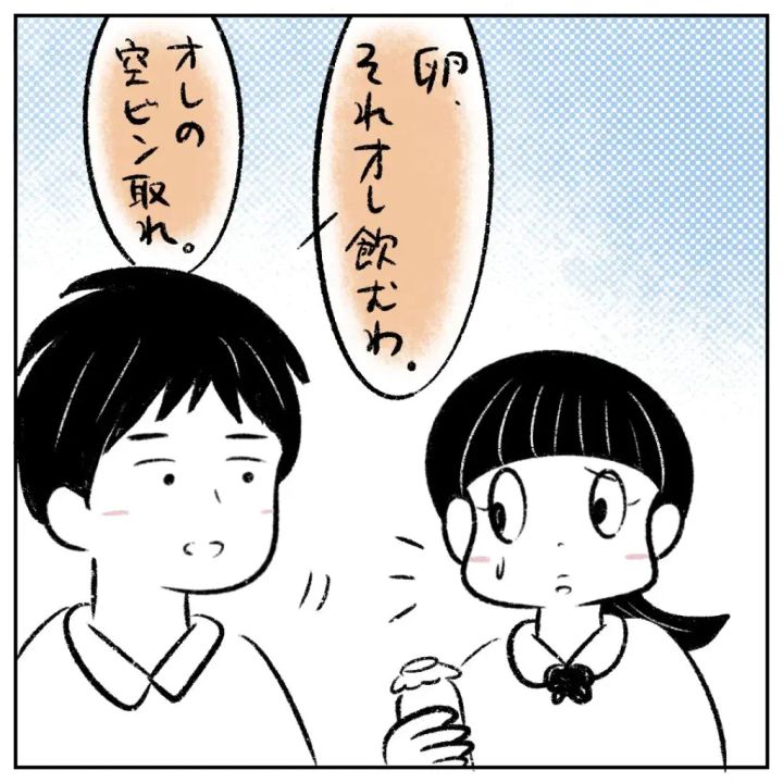 すると、「卵、それオレ飲むわ。オレの空きビン取れ」そう言ってくれるタケシくん。