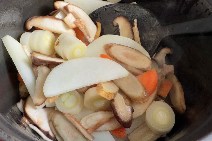 調理時間は20分前後。具材の種類が多いので、皮むきや切る作業に少し時間がかかりましたが、すべての材料を切り終えたら、あとはさっと炒めて煮るだけです。