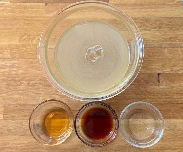 だしはお湯800mlに、顆粒の合わせだしの素小さじ2を入れて作りました。