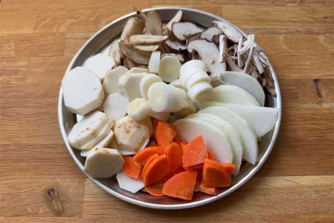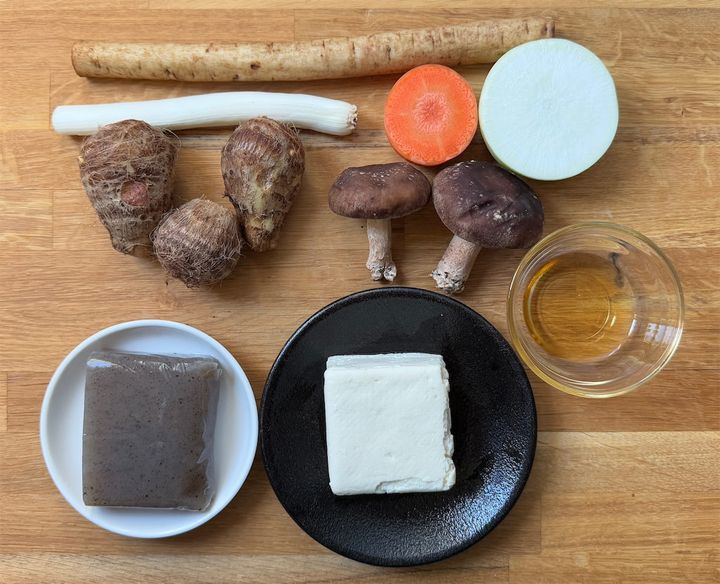 まずは具材です。根菜を中心に、豆腐やこんにゃくも入れて、具だくさんにします。